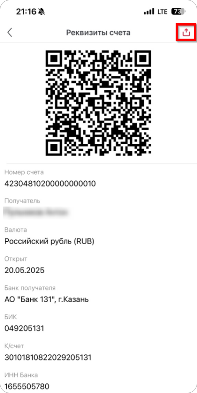 Получить реквизиты счета