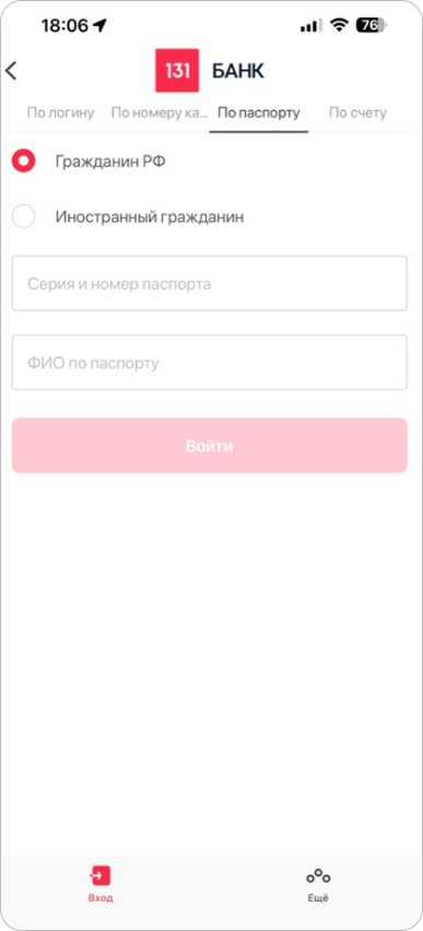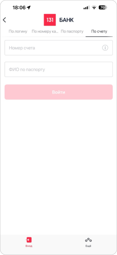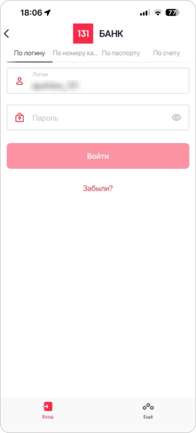 Если у вас нет логина или пароля, войдите в приложение другим способом и восстановите свои учетные данные. Если способы не подходят, обратитесь в Банк 131.